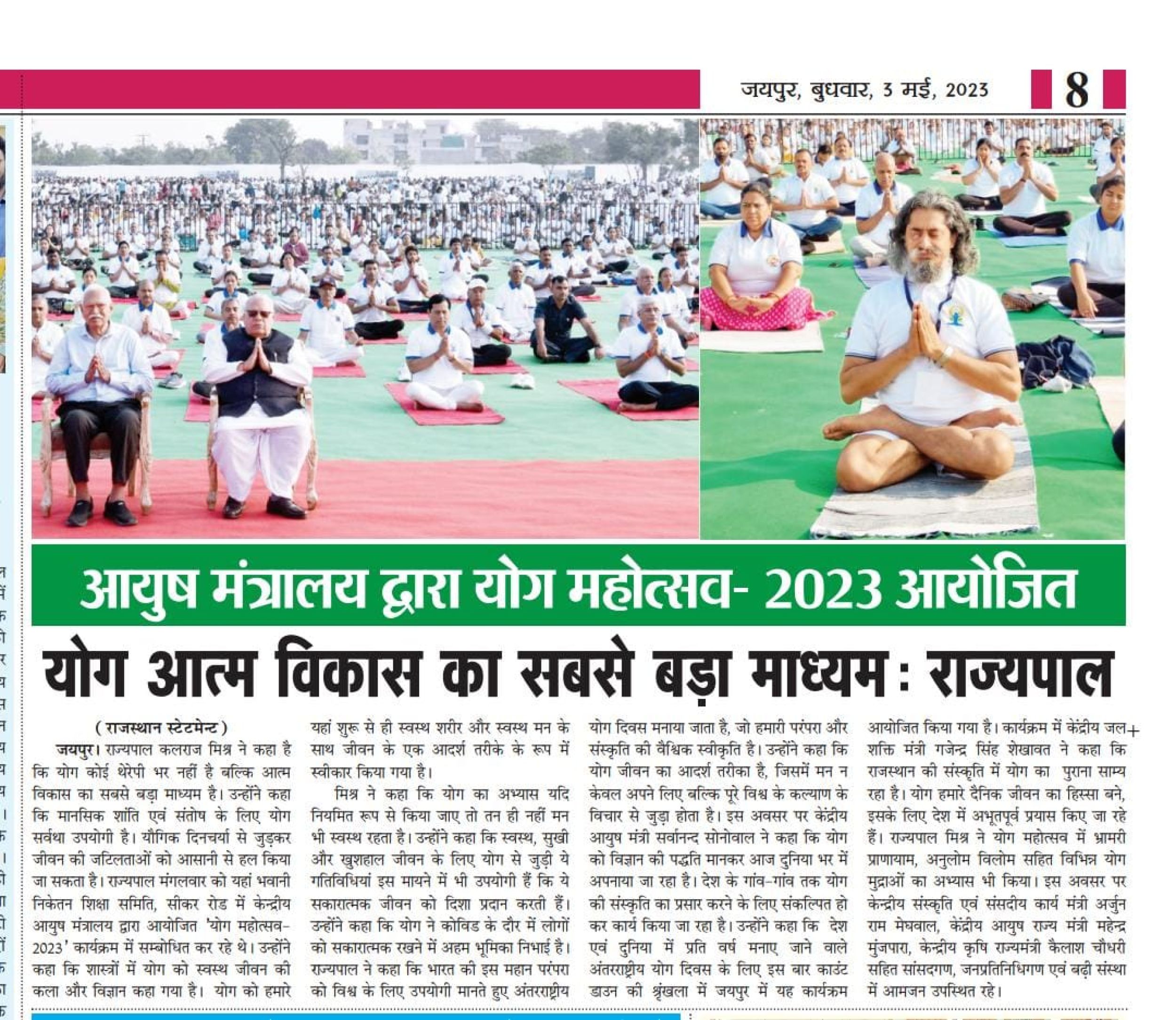 As part of this event, the Hon’ble Governor of Rajasthan, Shri Kalraj Mishra, the Union Minister of Ayush and Ports, Shipping, and Waterways, Sarbananda Sonowal, the Union Minister of Jal Shakti, Gajendra Singh Shekhawat were present; the Union Minister for Parliamentary Affairs and Culture, Arjun Ram Meghwal; the Union Minister for Agriculture and Farmer’s Welfare, Kailash Choudhary; the Union Ministers for Ayush and Women and Child Development, Dr Munjpara Mahendrabhai Kalubhai, and the Member for Rajasthan were present.